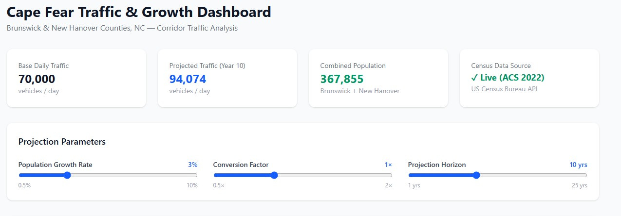Data DashboardWanted to provide dashboards to share data regarding our region.Economic DashboardCape Fear Memorial Bridge Traffic Data
