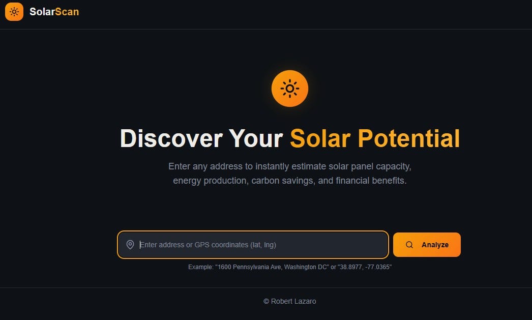 Utilizing the power of AI, I have created a tool to give you a snapshot of the potential of a solar array on your home or business.